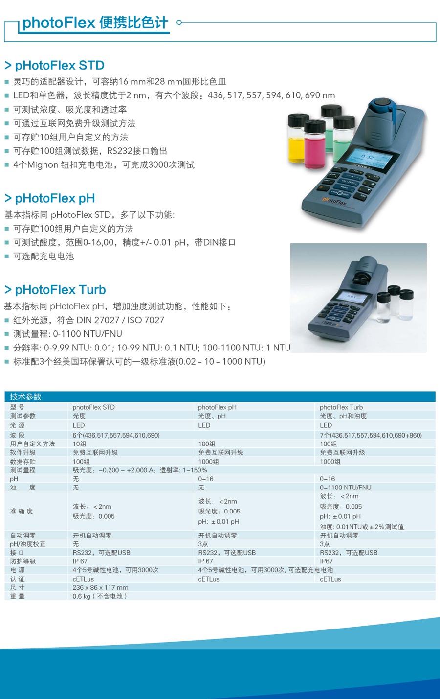 德國(guó)WTW pHotoFlex(STD/PH/Turb)便攜式光度計(jì)特點(diǎn):