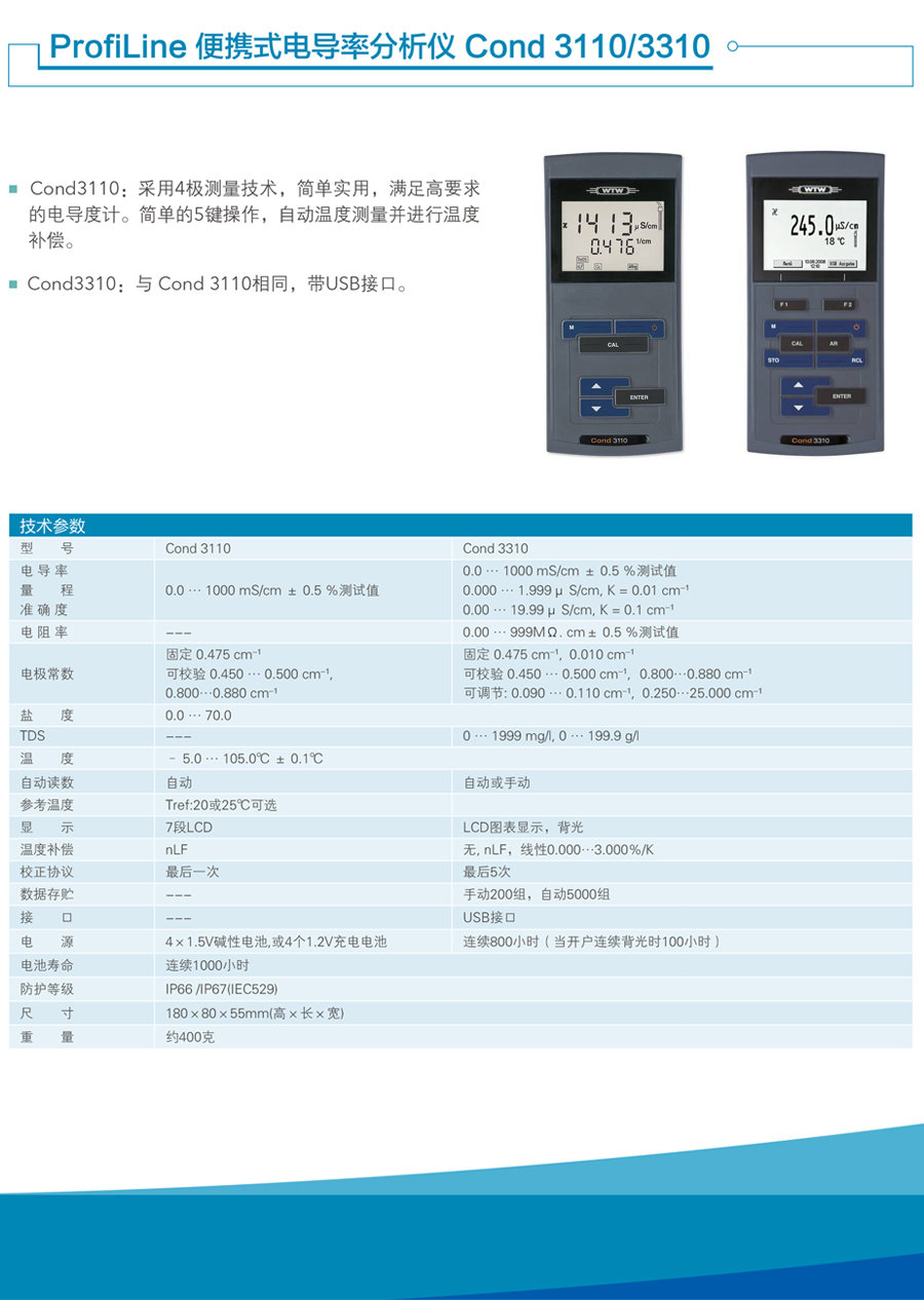 德國WTW Cond3110/3210/3310便攜式電導率/鹽度測定儀簡介