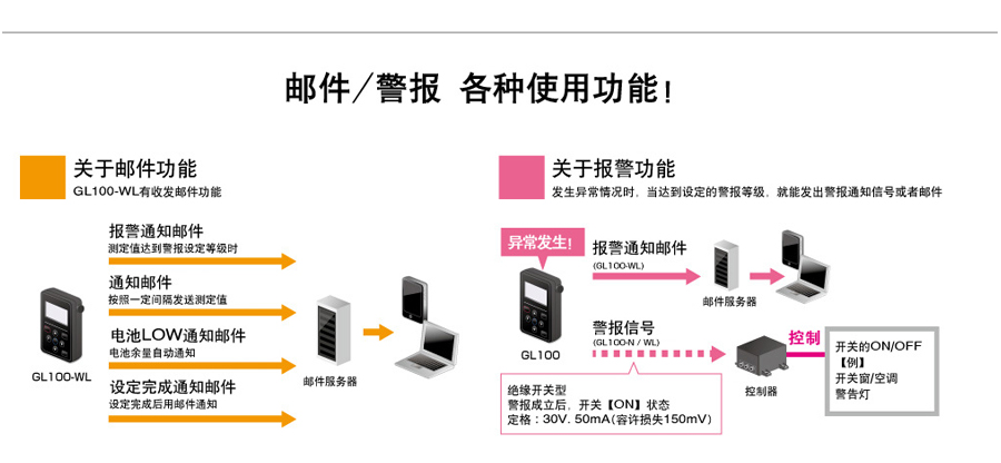 功能 數字顯示、波形顯示(僅限再生時)、收錄開始/停止控制、采樣間隔変更、郵件送信控制功能、定制功能
