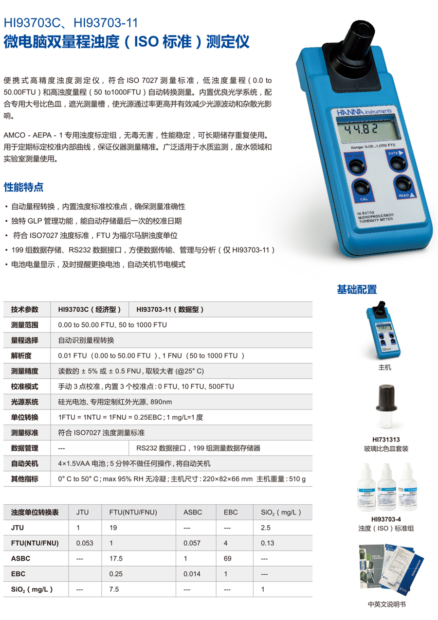 產(chǎn)品名稱(chēng):哈納 HI93703-11 微電腦濁度測(cè)定儀