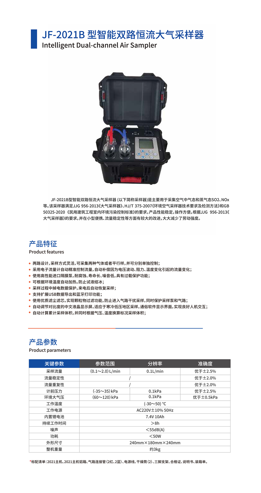 產品名稱:JF-2021B型智能雙路恒流大氣采樣器