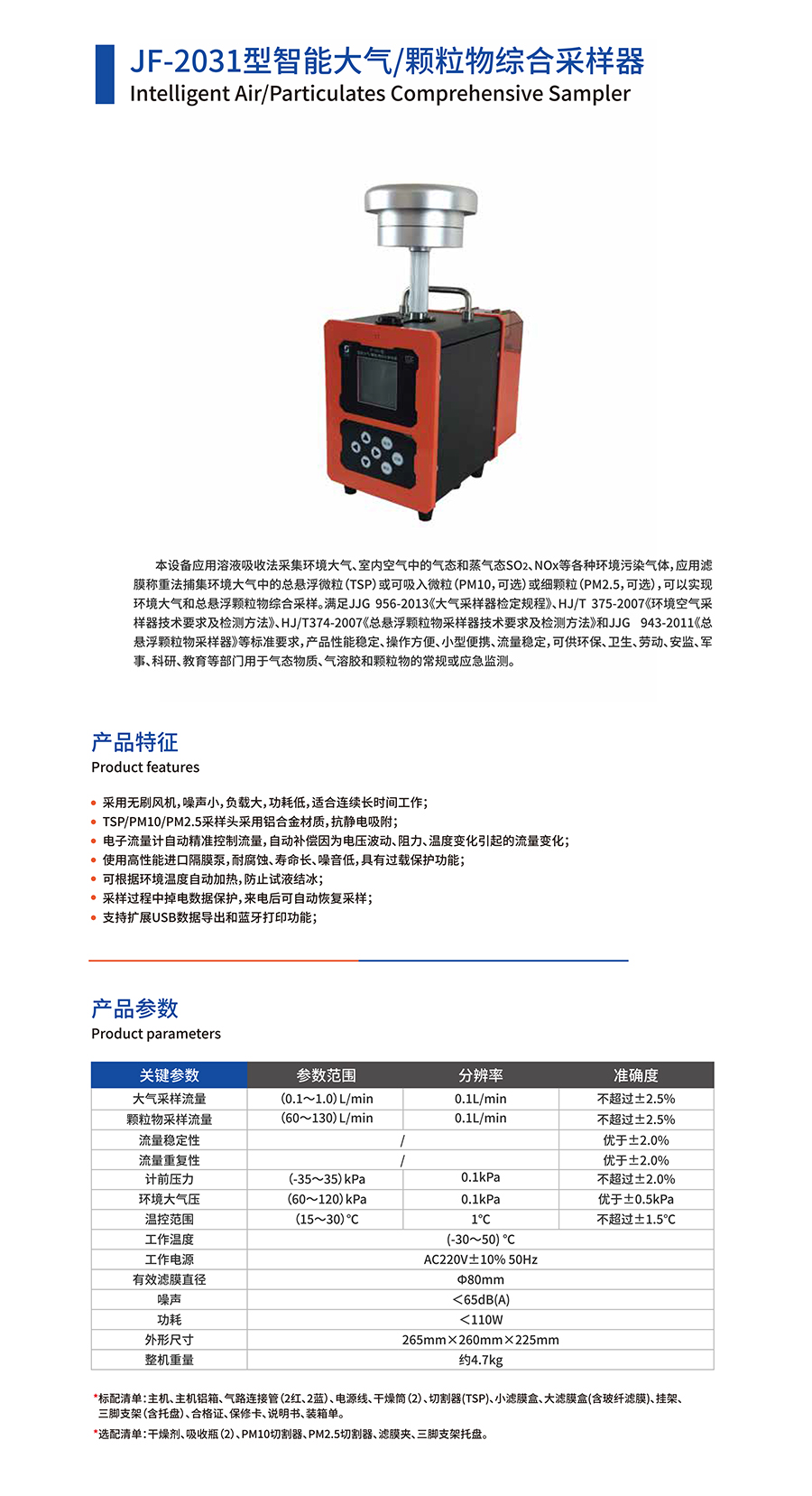 產品名稱:JF-2031型智能大氣/顆粒物綜合采樣器