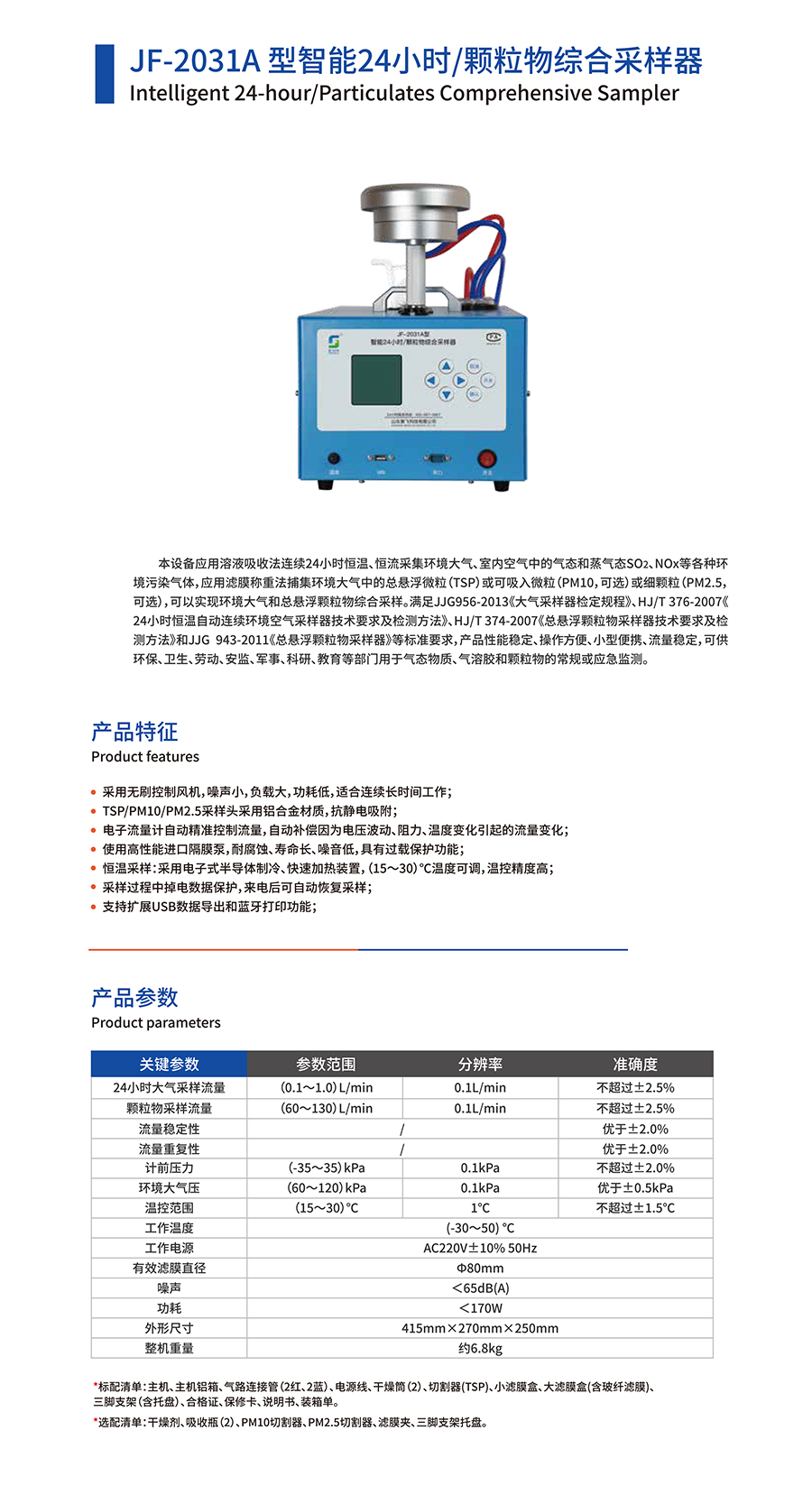 產品名稱:JF-2031A型智能24小時/顆粒物綜合采樣器