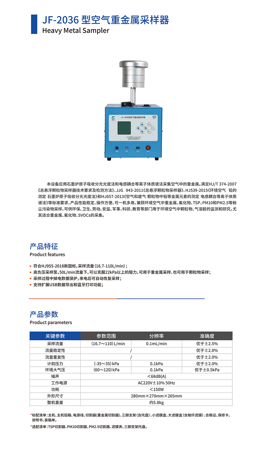 產品描述:本設備應用石墨爐原子吸收分光光度法和電感耦合等離子體質譜法采集空氣中的重金屬。滿足HJ/T 374-2007《總懸浮顆粒物采樣器技術要求及檢測方法》、JJG 943-011《總懸浮 顆粒物采樣器》、HJ539-2015《環境空氣鉛的測定石墨爐原子吸收分光光度法》和......