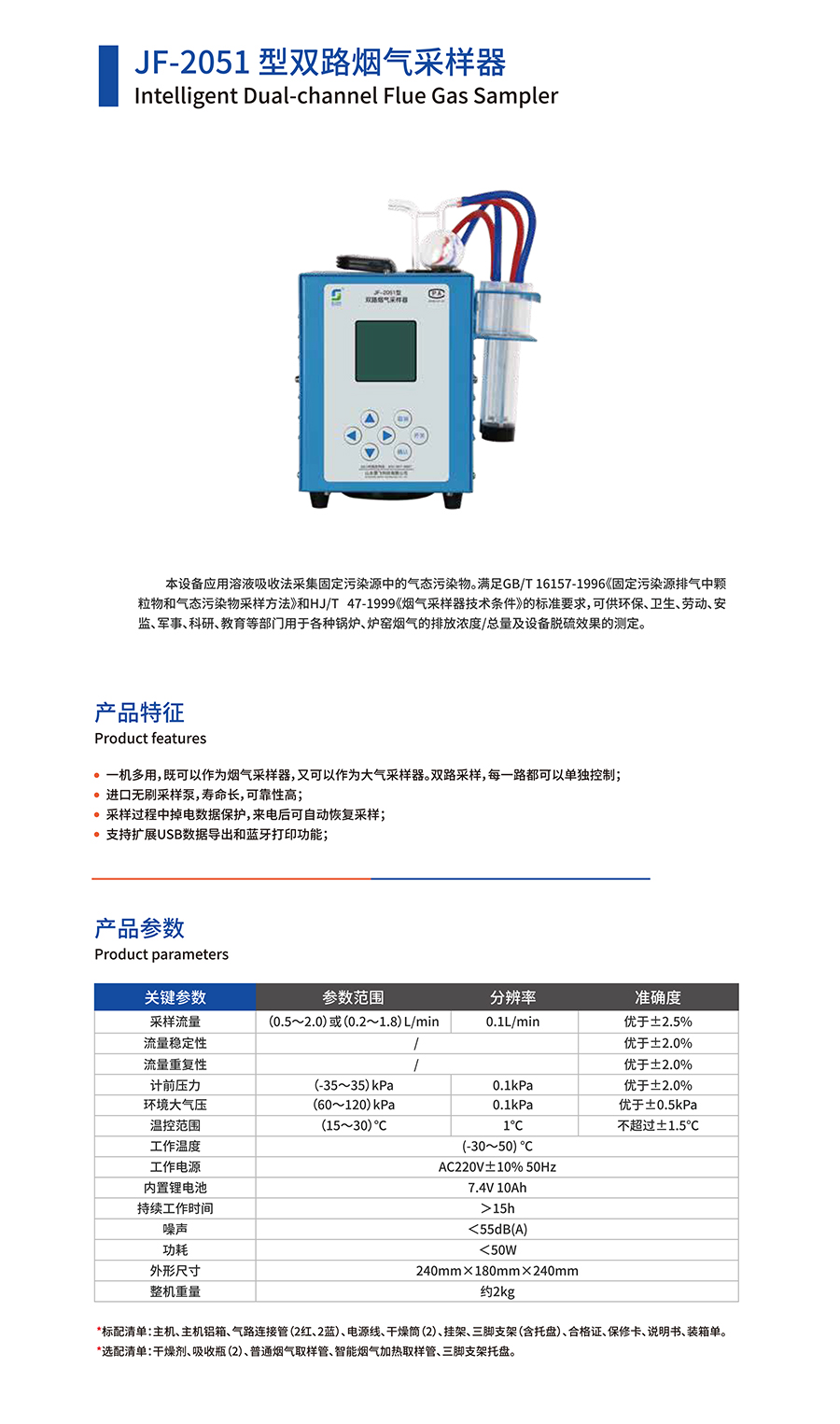 產品名稱:JF-2051型雙路煙氣采樣器